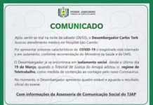 Após sentir-se mal na noite de sábado (28/03), o Desembargador Carlos Tork buscou atendimento médico no Hospital São Camilo.
