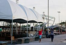 Uma estrutura de palco, tenda, banheiros químicos, praça de alimentação e sistema de segurança está sendo montada por uma empresa privada na Rua Victa...