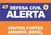 A Coordenadoria Estadual de Proteção e Defesa Civil ALERTA a população a cerca de rajadas de ventos fortes que PODEM ocorrer SÁBADO (08/02) nos...