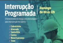 A Companhia de Eletricidade do Amapá (CEA) informa que no domingo, 6, o fornecimento de energia será interrompido, no período de 6h às 12h,...
