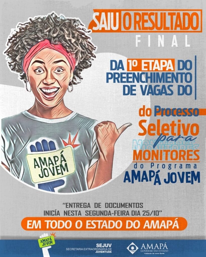 Para conferir a lista dos habilitados para 2ª etapa, basta entrar no site http://inscricao.amapajovem.ap.gov.br/ , e clicar na aba Resultado final 1ª etapa para baixar os arquivos com os resultados da 1ª etapa separado por níveis e Municípios.