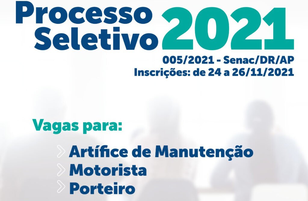 SENAC/DR/AP, torna público que estarão abertas as inscrições para o PROCESSO DE RECRUTAMENTO E SELEÇÃO destinado a selecionar candidatos para o preenchimento de vagas existentes em seu QUADRO PERMANENTE de pessoal conforme descritos abaixo, com lotação em sua Sede em Macapá no Estado do Amapá.