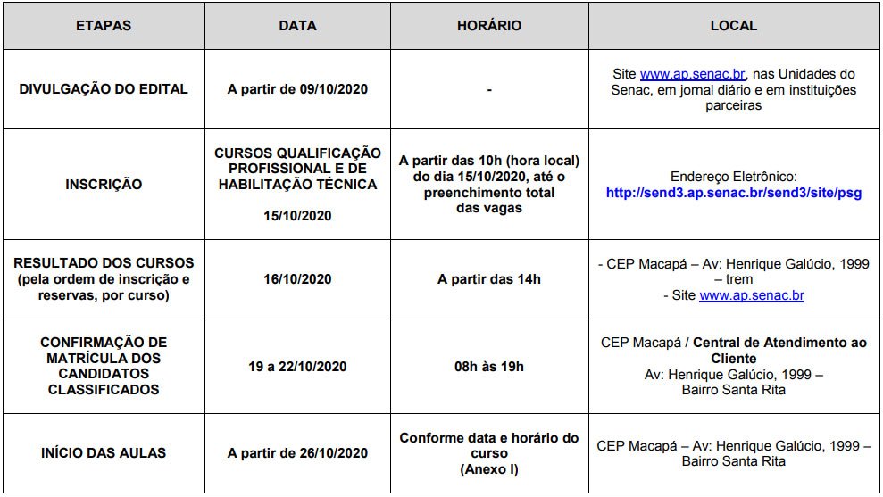 eletrônico: http://send3.ap.senac.br/send3/site/psg, a partir das 10h do dia 15/10/2020 até o preenchimento total das vagas.
