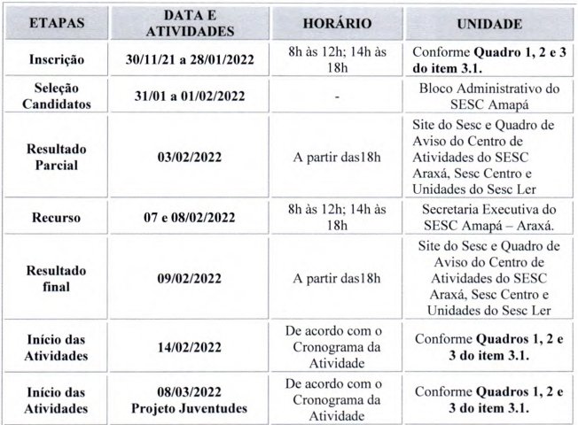 On-line: de 30/11/2021 a 28/01/2022 – e-mail: pcg(á)sescamapa.com.br