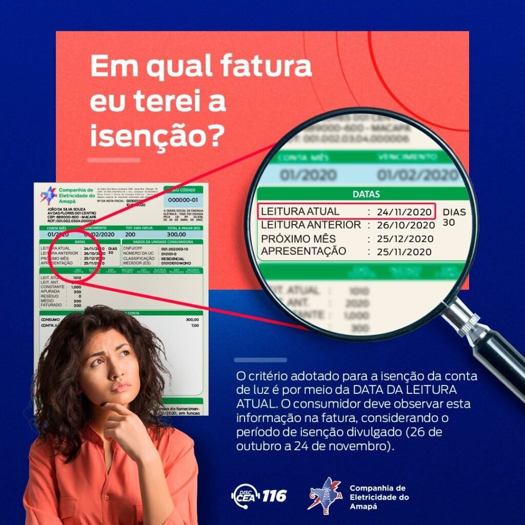 Esta isenção ocorre por meio da Medida Provisória de nº 1010/2020 do Governo Federal e beneficia 185.788 unidades consumidoras. Na terça-feira, 1°, a Agência Nacional de Energia Elétrica (Aneel) encaminhou as orientações à CEA para o cumprimento da matéria.
